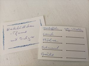 Die Zutaten kennst du, schreibst sie aber hinten auf die Karteikarte.