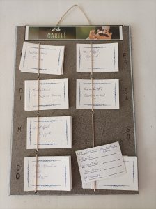 Nach dem Kochen stecke ich die entsprechende Karte einfach nach hinten und sehe, was es in der nächsten Woche gibt.